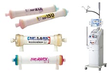 A blood purification device that adsorbs and removes endotoxins from blood through extracorporeal circulation. In addition to the domestic Japanese market, the product is CE marked indicating compliance with European standards. It is sold in more than 10 countries around the world, including Europe, Asia, and the Middle East.