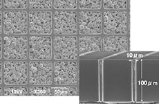 Unique technology is used to mold a partition between each pixel, with this partition then preventing light from spreading to adjacent pixels, resulting in a clear X-ray image. Used in mammography and other similar applications where high resolution is required.