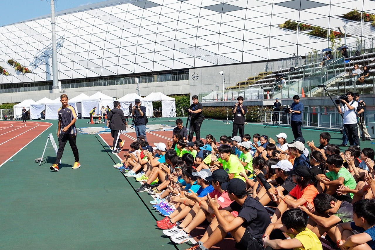The “DAWN GAMES FINAL Powered by TORAY” was held at AGF Field in Chofu, Tokyo, on October 13, 2024. About 70 children, ranging from elementary school kids to high school students, gathered at the venue. The students regularly participate in athletics through club activities and teams, so top athletes are the people they admire and hope to emulate. When Sani Brown was introduced and stepped onto the field, the eyes of these athletic hopefuls lit up even more.