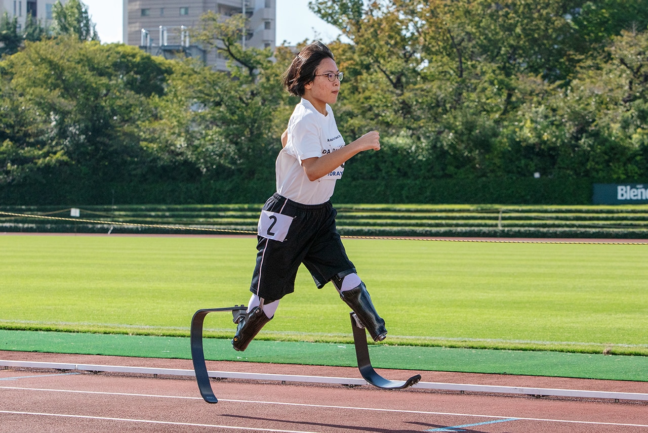 Xiborg Inc., a company that works with Toray to joint develop prosthetic legs for para-athletes, also participated that day. Prosthetic legs for sports made from Toray’s carbon fiber reinforced plastic (CFRP) were on display at the venue. Xiborg CEO Ken Endo says that the company wants to eliminate the barrier between able-bodied and para-athletes by promoting more inexpensive and high-performance sports prostheses. “Currently, para games and tournaments for able-bodied athletes are separate, but the focus of para-athletes is on athletics, not just para-athletics, so in that sense I hope that everyone interested in track and field will come out to watch, not just those interested in para-athletics. Our aim is for a universal environment in which the para and regular athletic worlds are fused.”