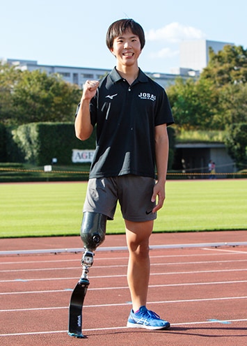 Haruta Saito, a runner with a prosthetic leg who participated in the Sani Brown Speed Trial last year, also took part in this year’s para race. A second year high school student, he attends a school with a strong track and field team, which also happens to be Sani Brown’s alma mater. Haruta is a regular member of the track and field club, and practices alongside his able-bodied upperclassmen and friends.