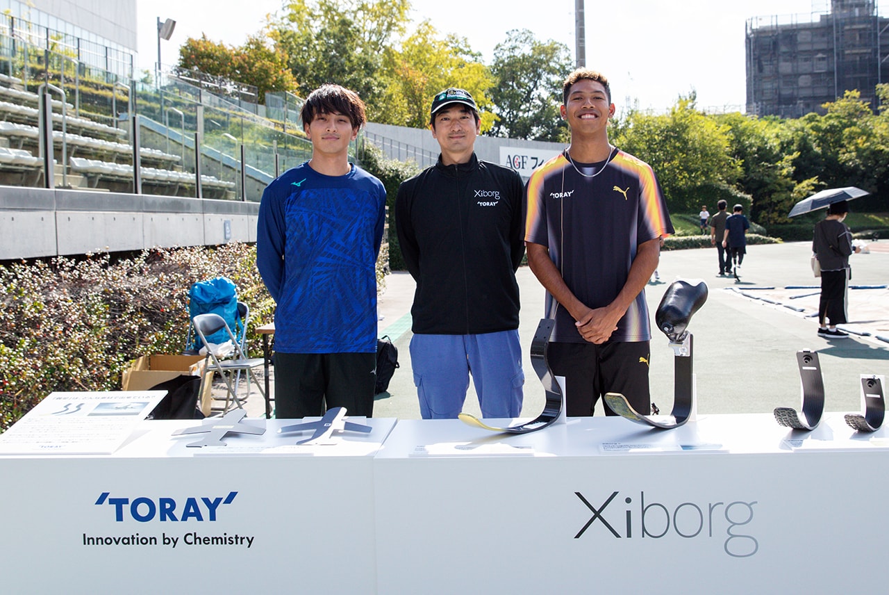 Xiborg also set up a booth to experience what it is like to use prosthetic devices, and some track and field fans came to give it a try. Along with prosthetic legs for top athletes, Xiborg also develops general prosthesis that allow users to run more easily. Their objective is to allow more people to enjoy track and field. Toray and Xiborg will continue to co-create with the aim of broadening the scope of track and field, and breaking down the barriers separating para athletics.