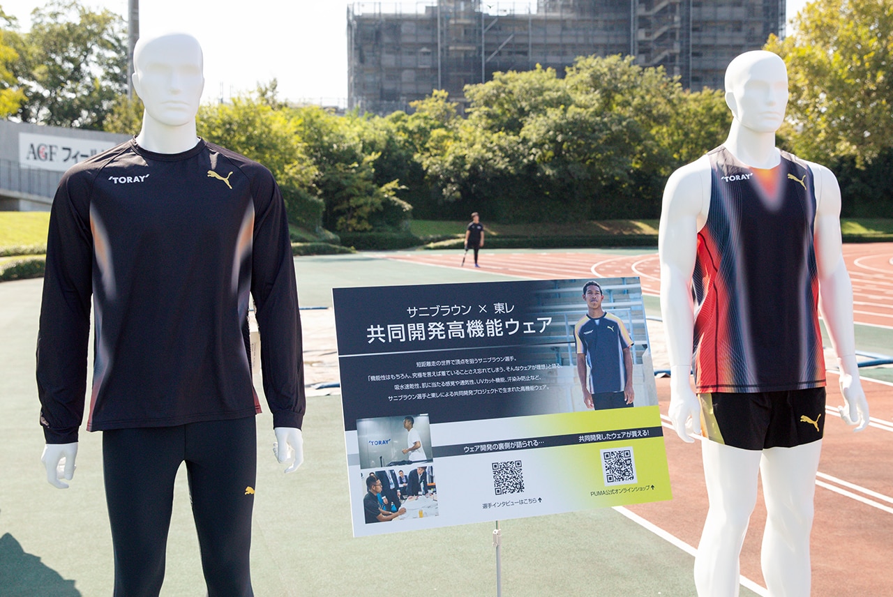 Track and field is a sport where matches are decided by 0.01 seconds, so the selection of clothing and shoes has a significant impact on results. Sani Brown and Toray’s material development team gave a presentation featuring quizzes and the athletes’ experiences to explain the importance of clothing materials in athletics, and the functionality of the jointly developed wear.