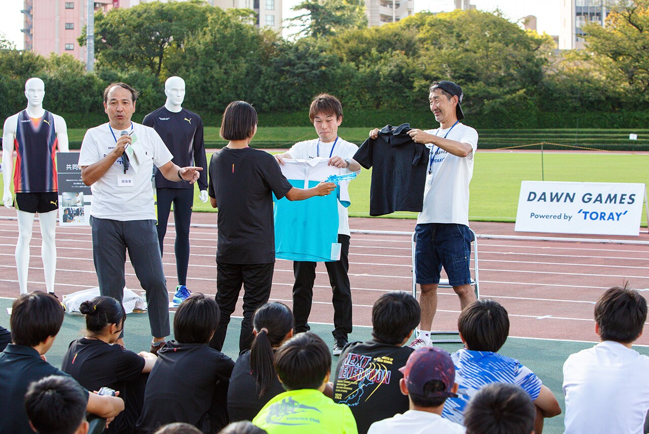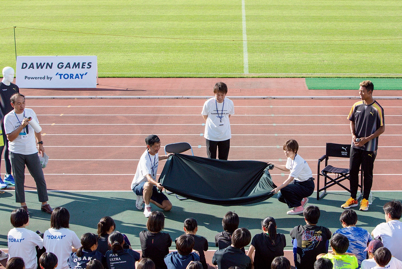 “This year, along with races, the program includes skill clinics and an introduction to the clothing developed with Toray. Nurturing the next generation is one of our objectives, but beyond that, we also want to further foster a love running. To that end, I would like to open the tournament more broadly to anyone who thinks that they are the kind of person who should participate, not just the kids in the track and field club. In addition to practicing hard, I want the children to see and feel various things with their own eyes on a regular basis, and test their potential. The chance to touch and feel Toray’s materials, like we had today, is also an important experience. I believe that creating such opportunities is part of the role of athletes like me.”
